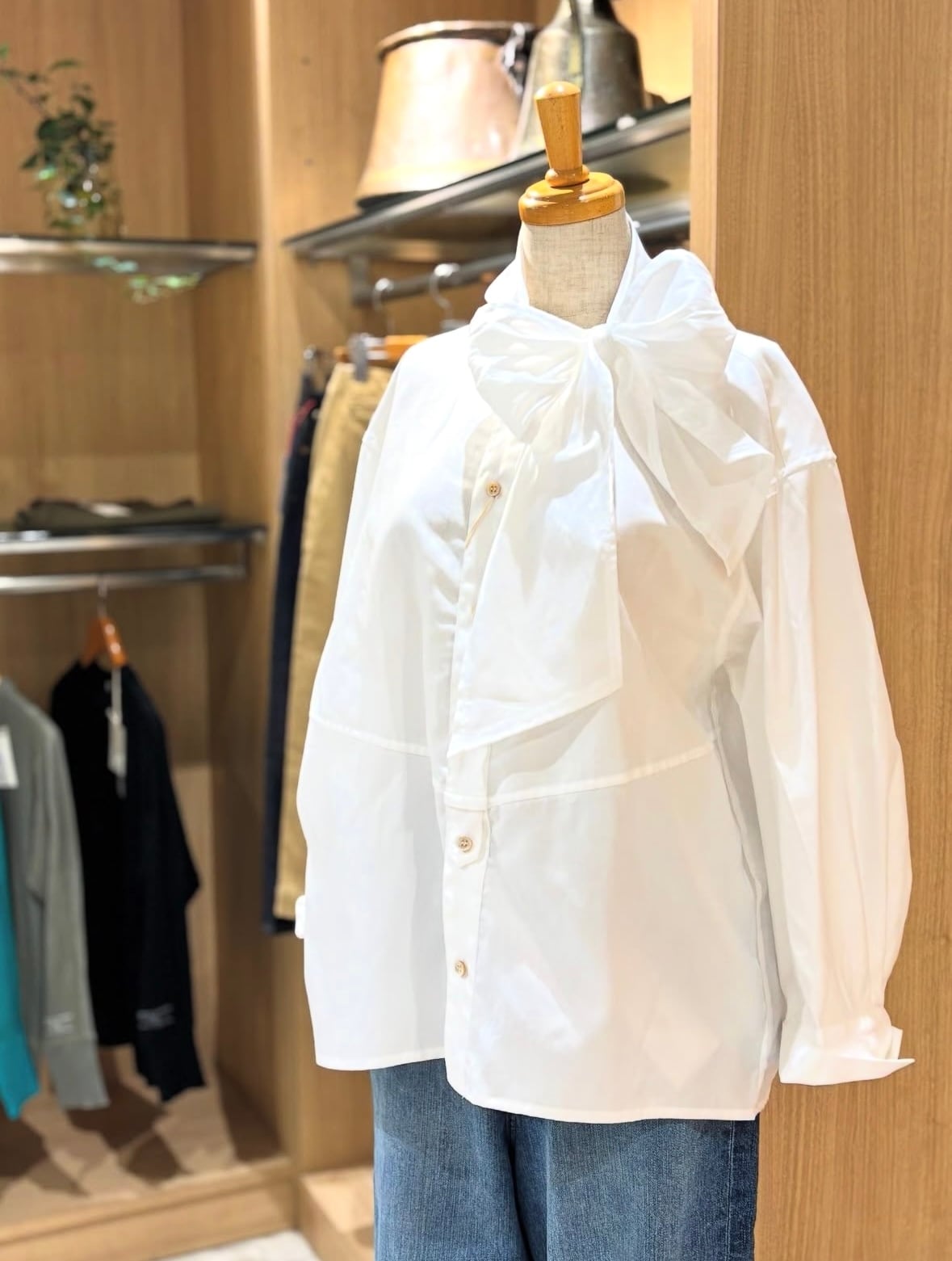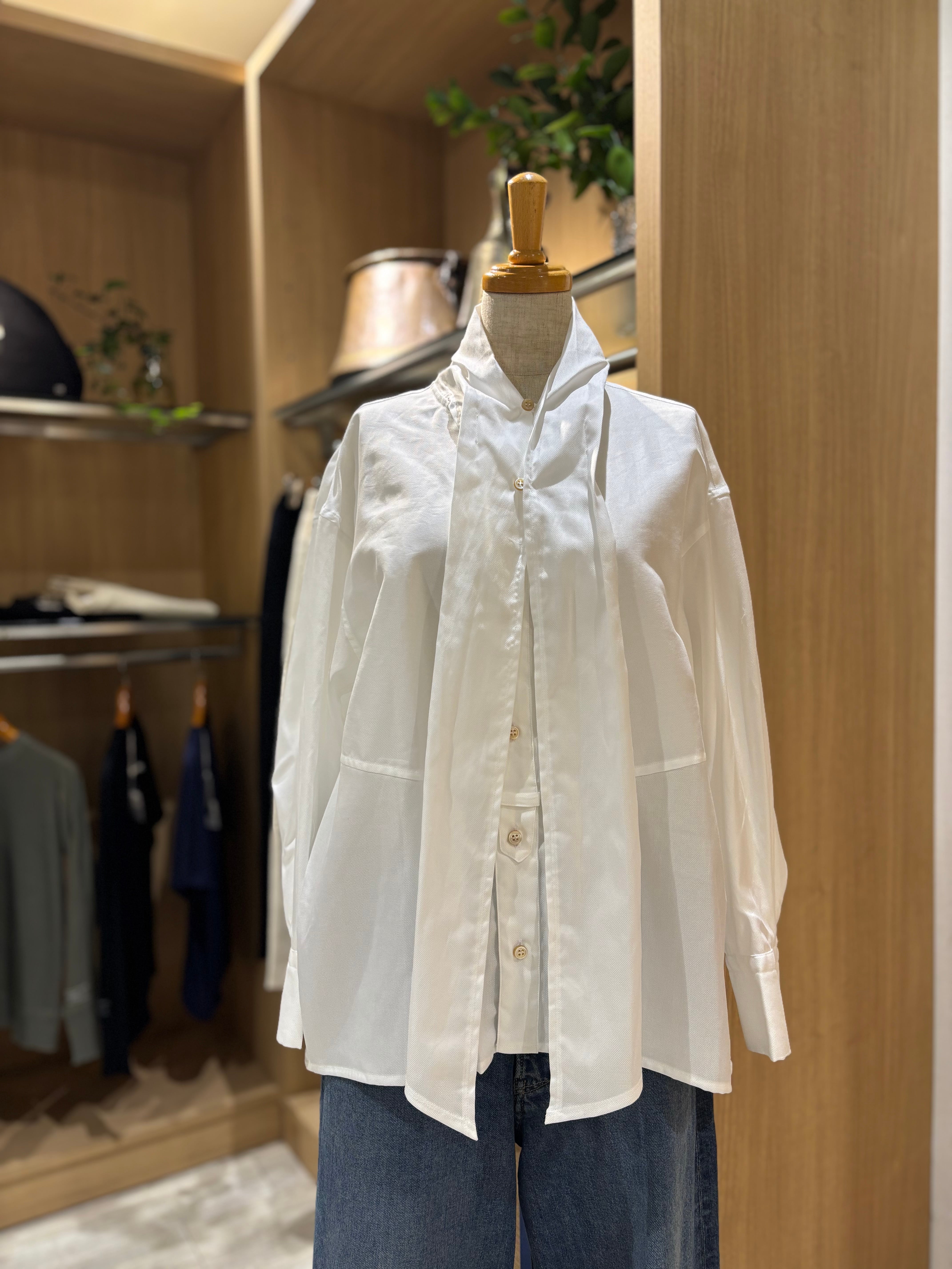 もちろんリボンにしても!アレンジが楽しめるシャツです。